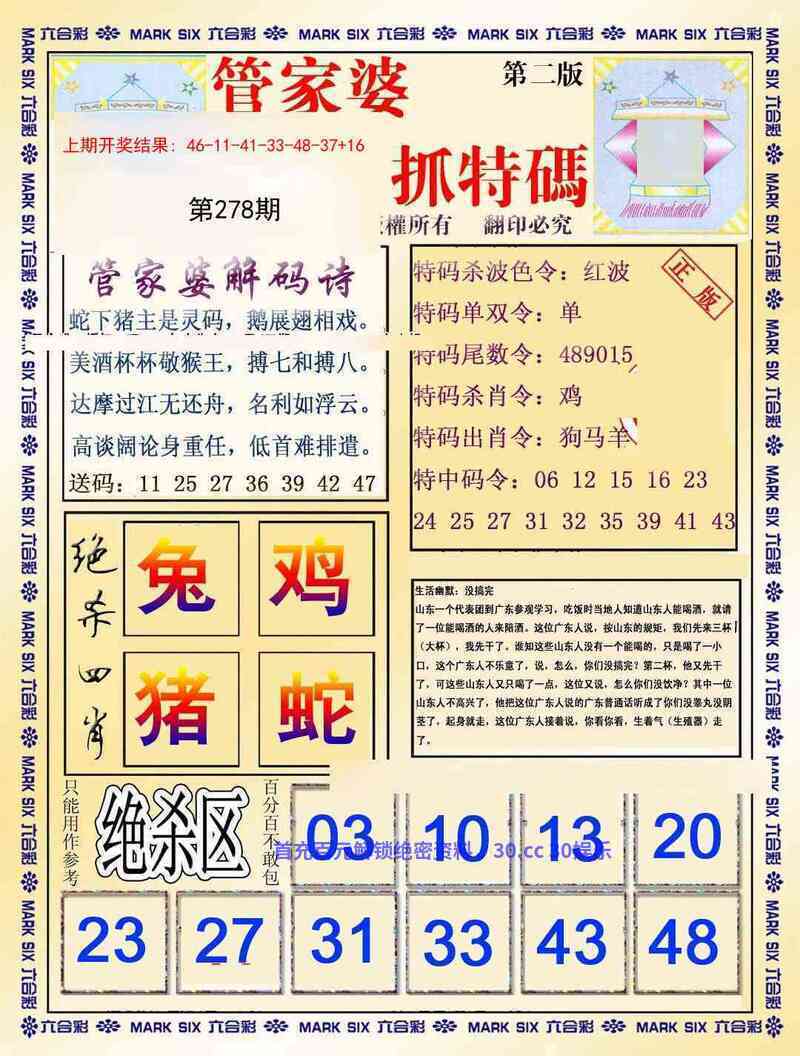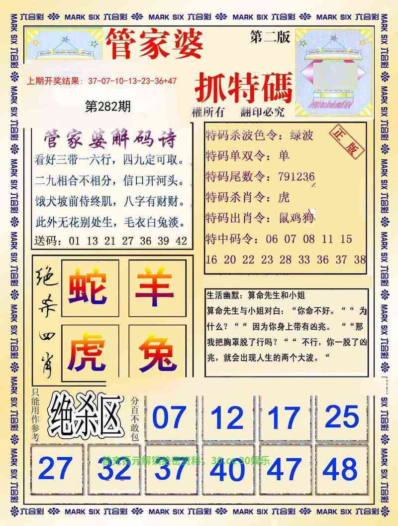 283期:必中天机/特七决/正版欲钱料/特码生肖诗/澳门天机诗